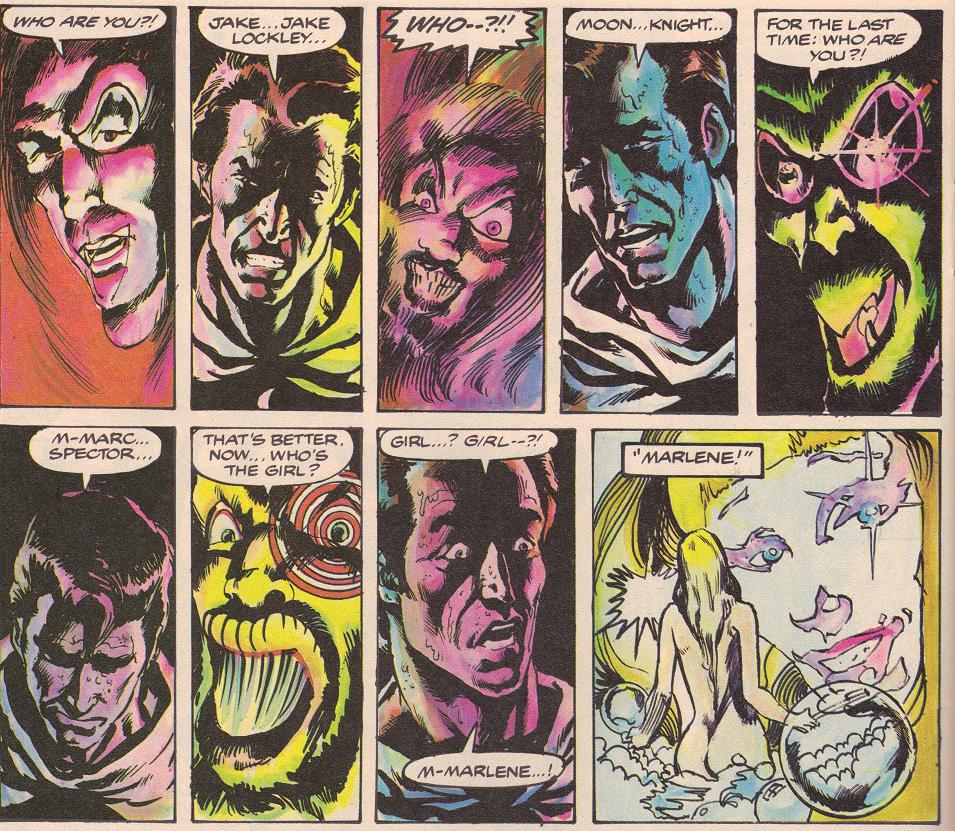 - Superheroes with multiple personalities are straight out of the original Moon Knight by Doug Moench & Bill Sienkiewicz. Millionaire Steven Grant. Mercenary Marc Spector. Cabbie Jake Lockley. And, of course, Moon Knight. God, I loved that series. As an aside, I don’t think I’ll ever forgive Alan Zelenetz for laying waste to the mystery of Moon Knight in the ’80s. An ankh, Alan? Seriously, a freakin’ ankh as your signature weapon? And don’t get me started on West Coast Avengers. Seriously. Don’t poke the bear.